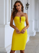 This She Off Her Fifth Shot Mini Dress is the perfect blend of sophistication and elegance. Crafted from luxurious yellow fabric, this mini dress exudes a graceful air of exclusivity. An ideal choice to add a touch of class to any look.
