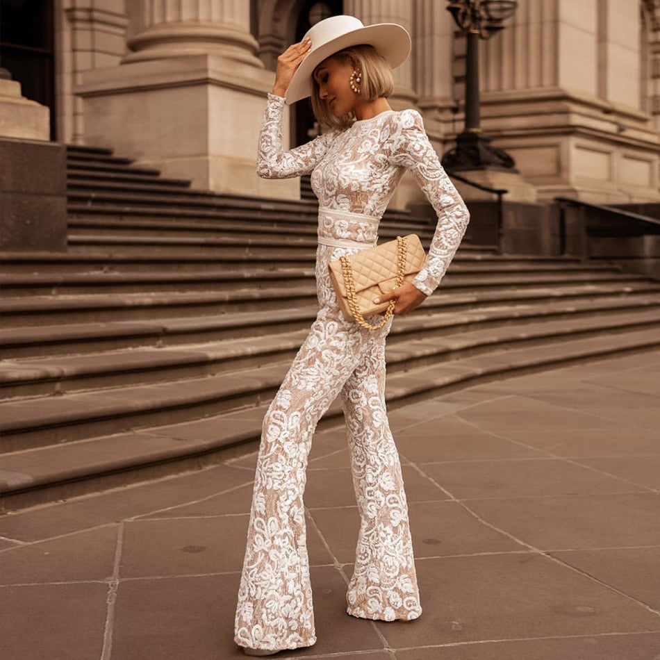 This stylish jumpsuit is the perfect way to warm up on cool days. Lightweight materials help you stay comfortable all day long. This flared style and floral pattern give you a feminine touch. Wear this jumpsuit with any form of formal wear for an added sense of glamour.