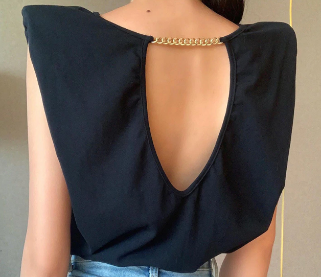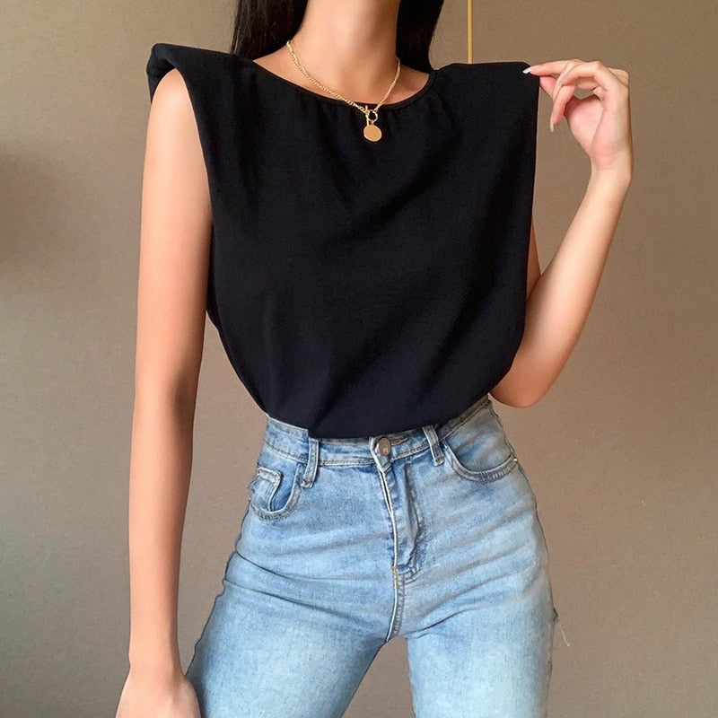 Black Sleeveless T-Shirt With Shoulders Padded And Cotton Spandex Material