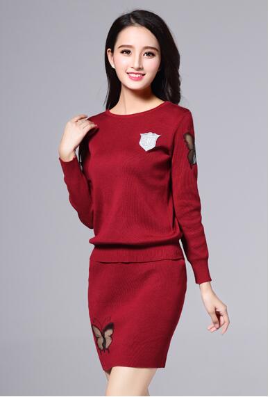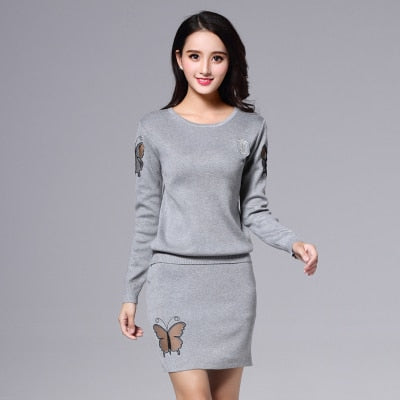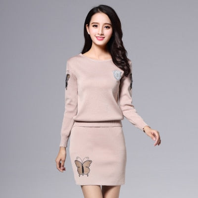 Elastic Waist Skirt Sets with Butterfly Pattern, Long Sleeve, and O-Neck Collar