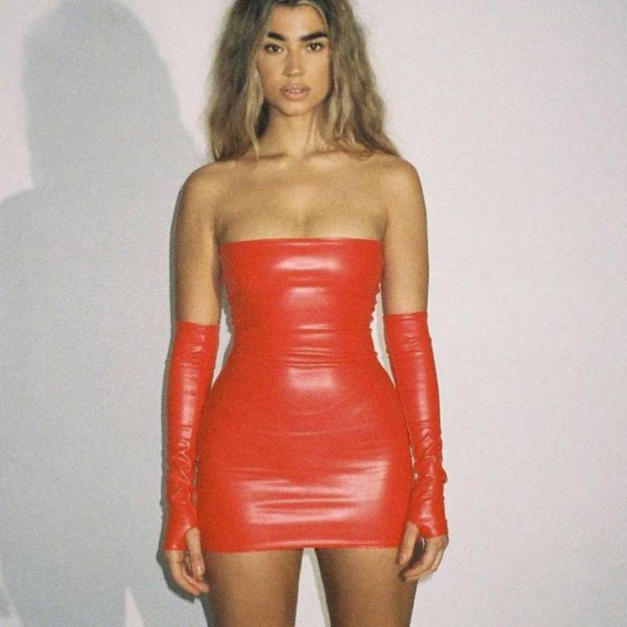 Strapless PU Mini Dress with Gloves Decoration and Polyester Material