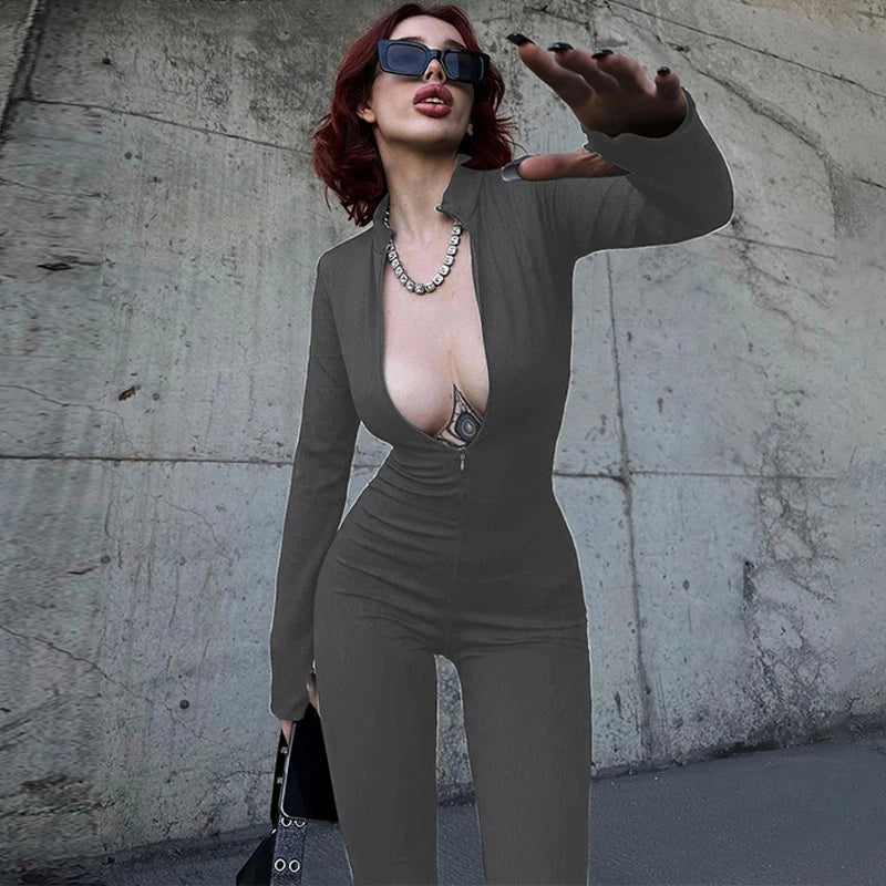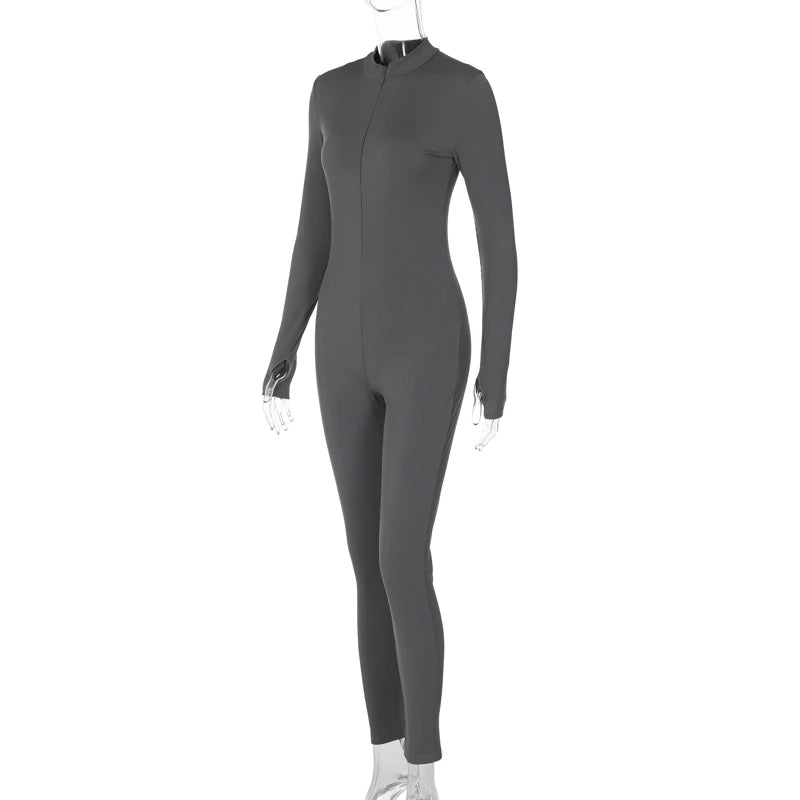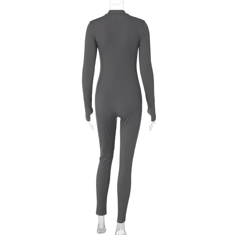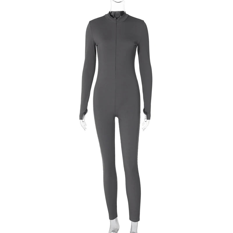 This jumpsuit is the perfect combination of comfort and style. It's made of a blend of polyester and spandex, giving you a breathable and stretchy fabric that will keep you comfortable all day. The solid jumpsuit features a zipper closure for easy on and off.