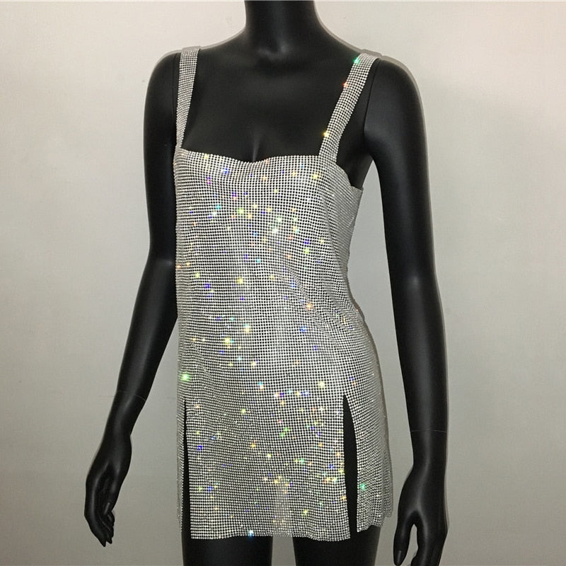 Wanna look stand out for the party? This mini dress is totally captivating. Features 2 slits on the front and a square neckline, it sure makes you look sexy. It has clasp closure on back minimalist design of strap.