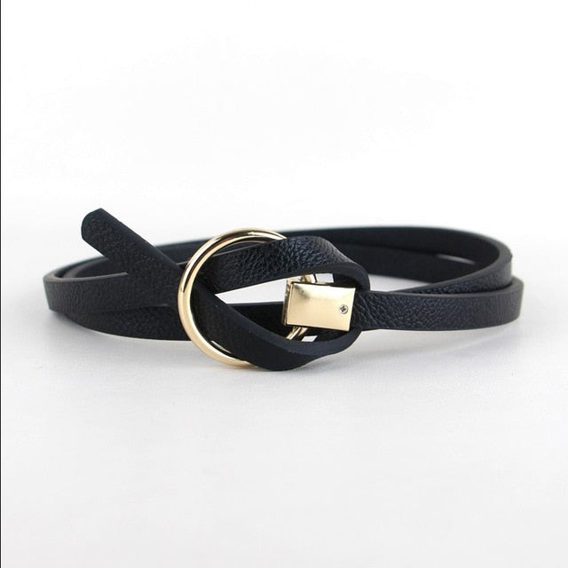 Knot Style PU Leather Belt with Metal Ring Buckle