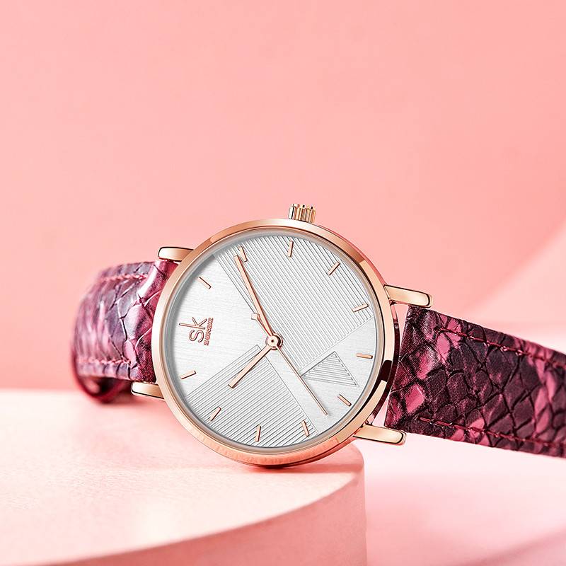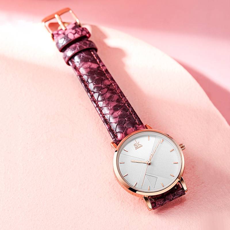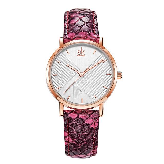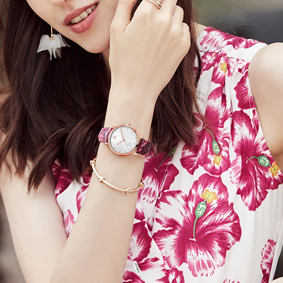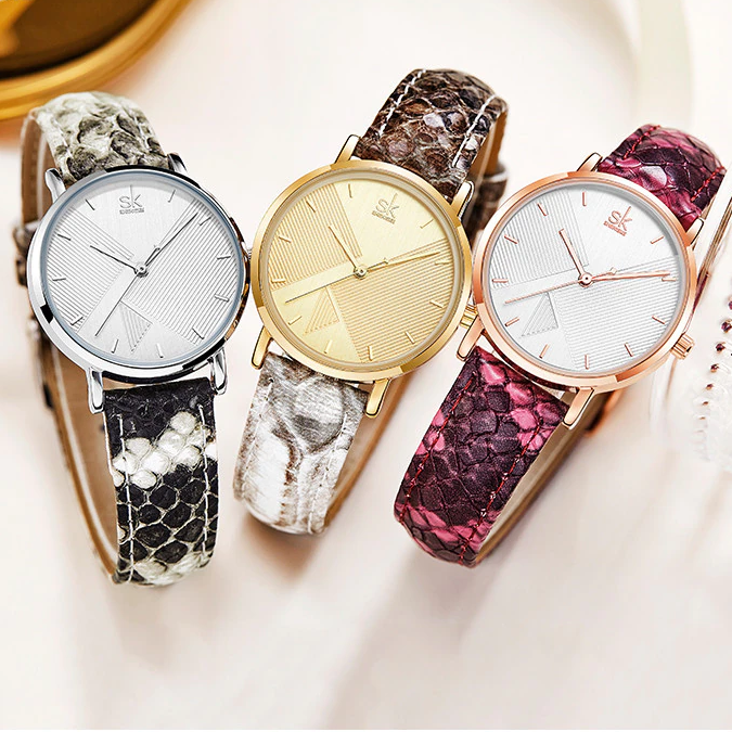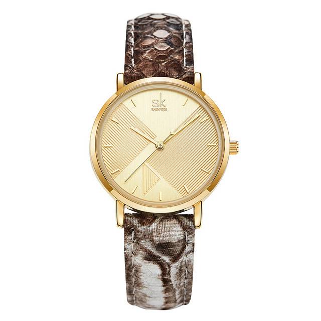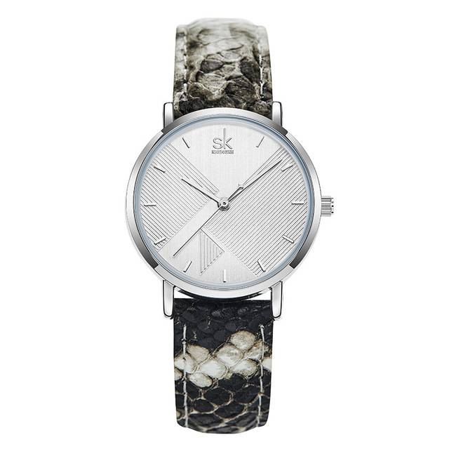 Stainless Steel Round Watch with Snake Skin Patterned PU Leather Strap