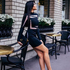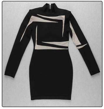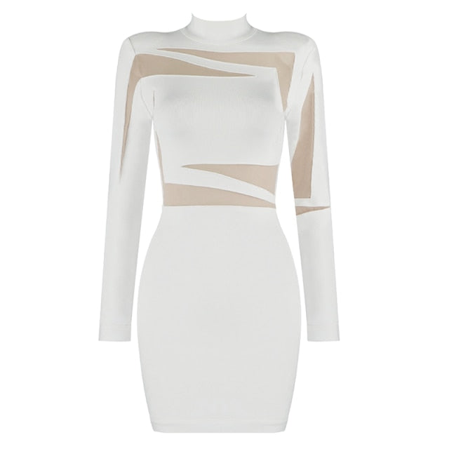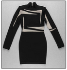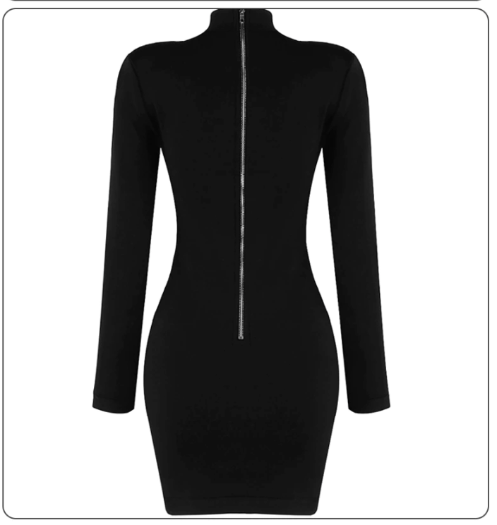 Long-Sleeved Mini Dress with Stand Collar, See Through Geometric Decoration, and Zipper Closure
