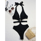 Dive into summer with this striking V-neck cut out halter monokini. The bold halter neckline and strategic cut-outs create a modern, fashion-forward silhouette that flatters and turns heads. Designed for confident swimmers and beach lovers, this one-piece combines style with comfort. Perfect for poolside lounging, beach days, or making a statement at your next vacation. The sleek design offers support while showcasing your personal style.