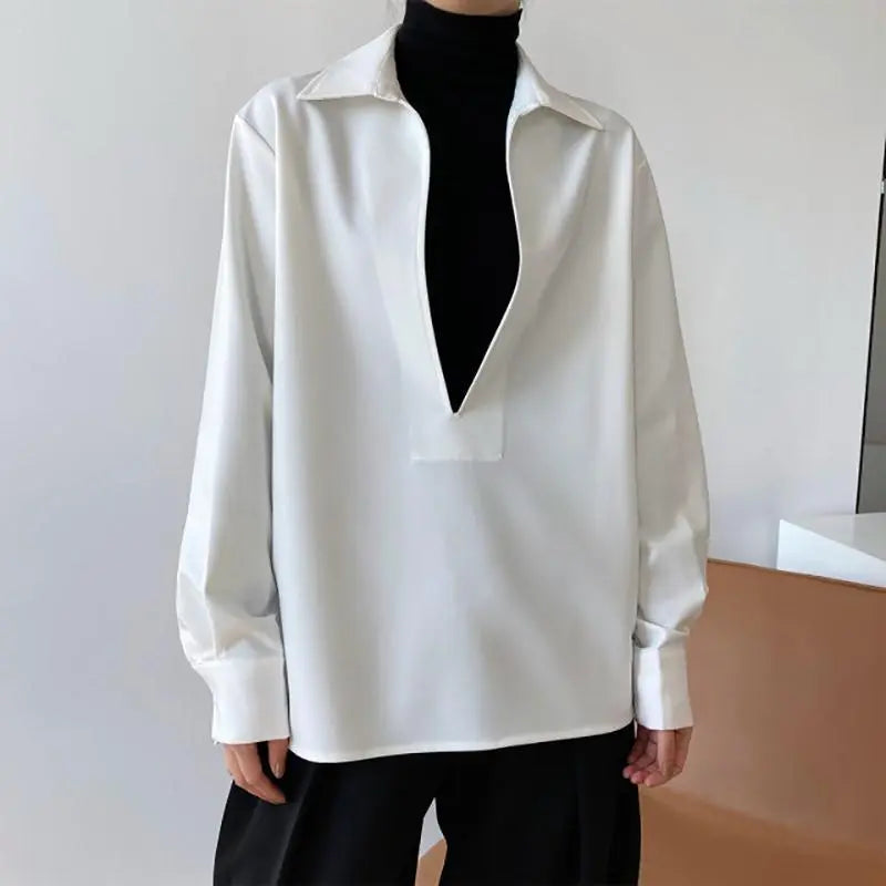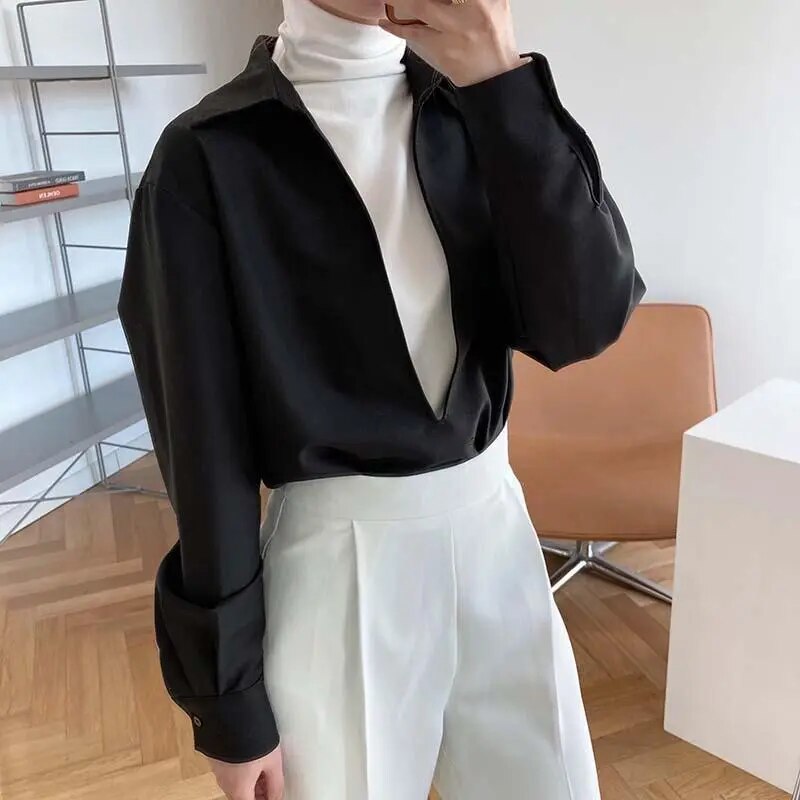 This blouse features a classic silhouette crafted from lightweight polyester, with a solid color for timeless style. Perfect for any occasion, pair this blouse with jeans, leggings, or skirts for a look that is both fashionable and functional.