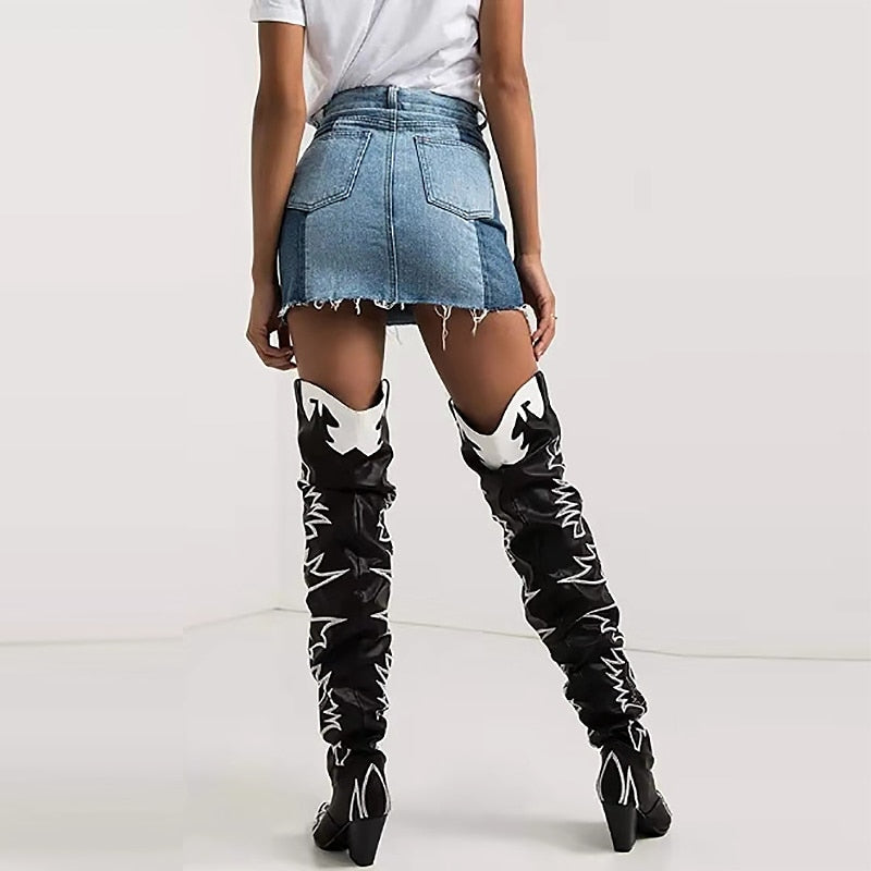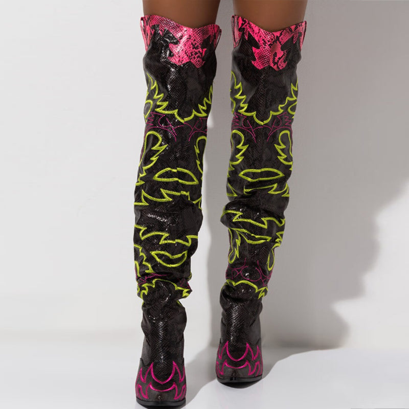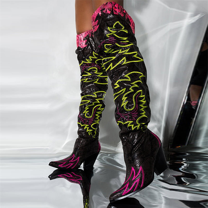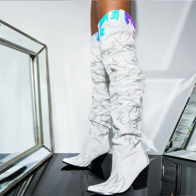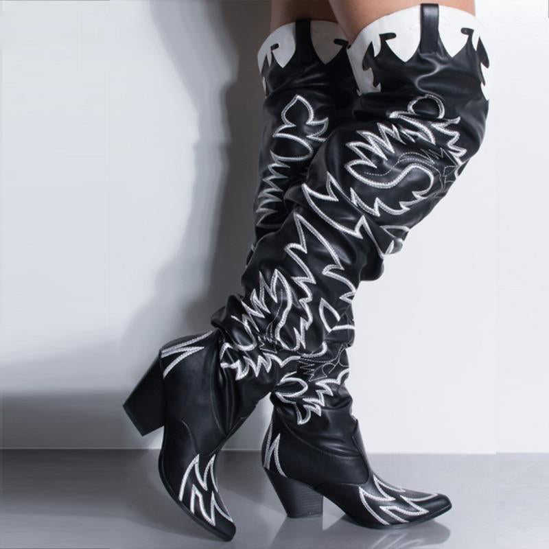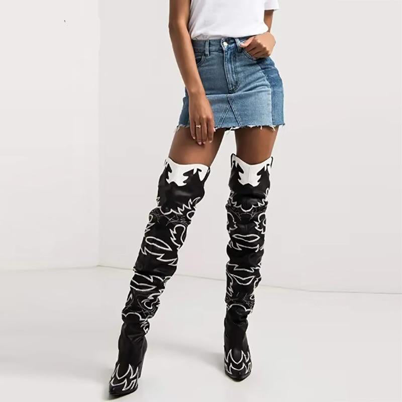 Western Cow Girl Embroider Pointed Toe Over The Knee Boots