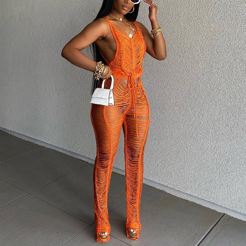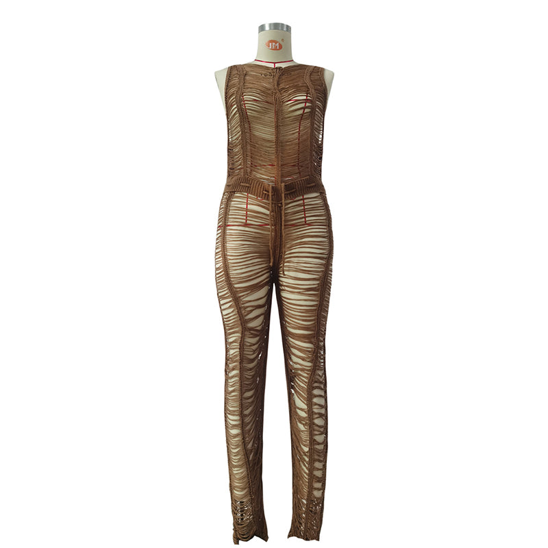 Mono Color Sleeveless Full Hollow Out Style Jumpsuit Made From Polyester Material