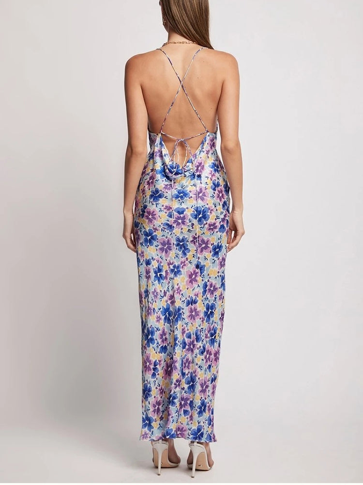 Flower Patterned Maxi Dress with Spaghetti Straps, Square Neckline, and Polyester Material